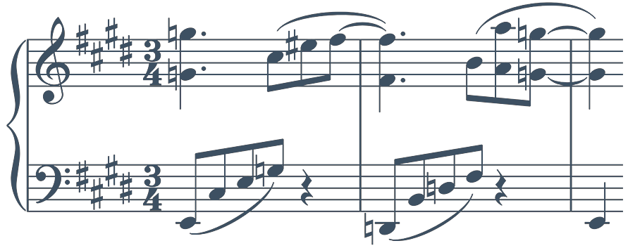 La main gauche est elle-même une grande mélodie qui est très différente de celle de la main droite. Il est fondamental de bien savoir la chanter, ainsi que de la mémoriser pour qu’elle puisse soutenir la main droite.